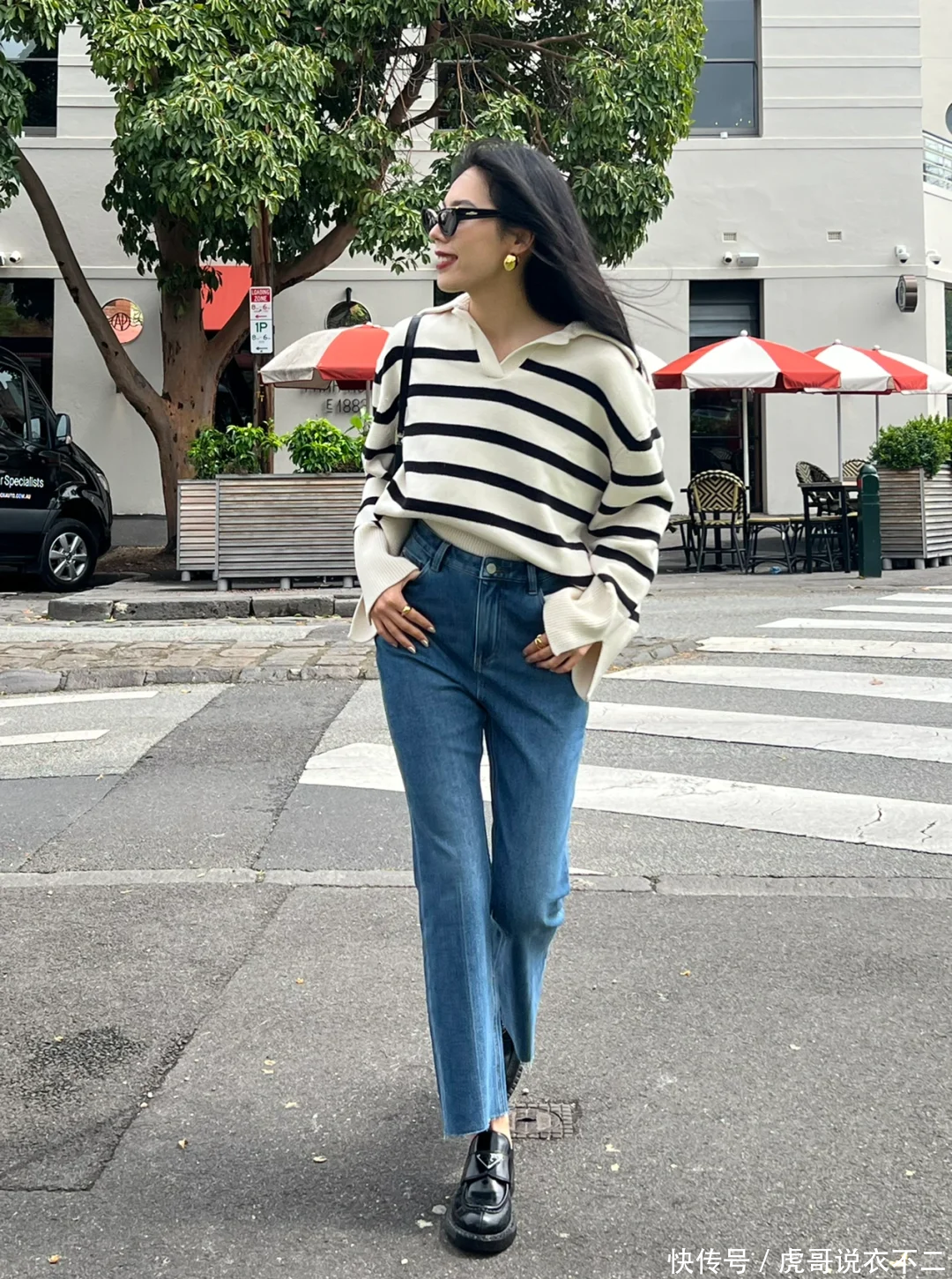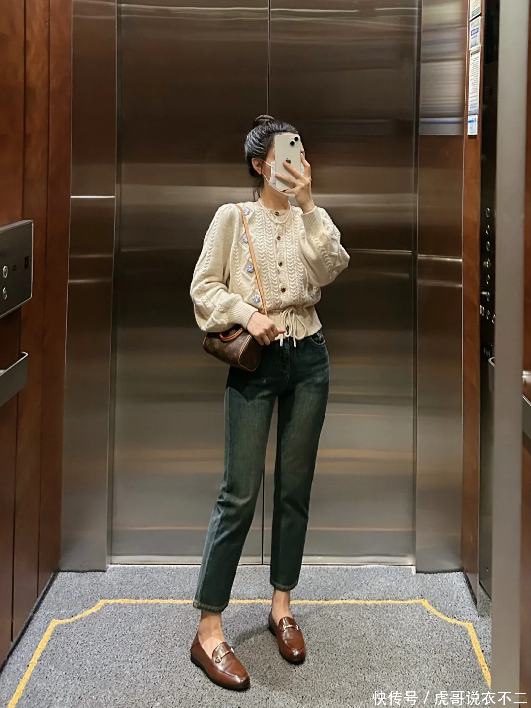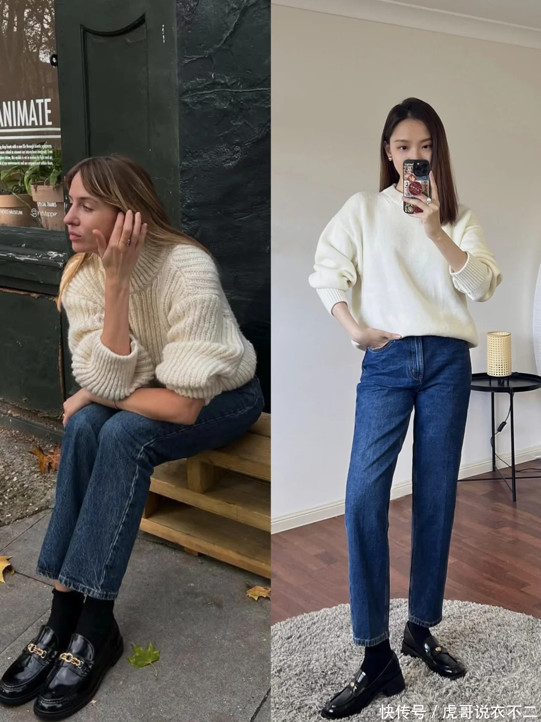 三、乐福鞋+牛仔裤+毛衣:周末出行的慵懒哲学